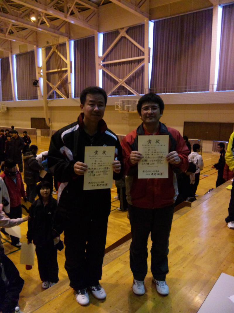 男子2部ダブルスにて高橋コーチが米沢南部の三上コーチと組んで優勝しました\^o^/
