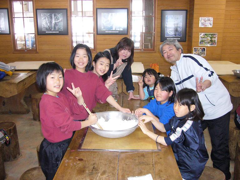 今日は午前中、飯豊少年自然の家でうどん打ちをしました。