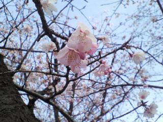 葛飾区小菅の公園を散歩していたら、桜が咲いてました。まだ二月なのにはやいです。