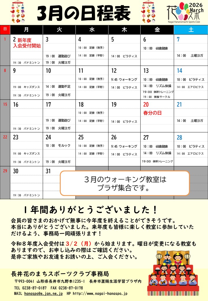 3月の日程表です。