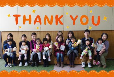 郷土の行事の体験など、様々な活動をしてきた共育セミナーなかよし くらぶも、無事に平成27年度の事業を終了。10組の受講者の皆さんが この活動から巣立っていきました。 ▽サポーターの皆さんによる読み聞かせも最後です。 ![]() 始めは恥ずかしそうにしていたお友だちも、毎週参加するうちにお友 だちも増え、名前を呼ぶと元気よく返事を返してくれるようになりま した。これまでの活動を写真で振り返りながら、どんどん成長して 行く姿が印象的でした。 ▽写真を見ながら1年間を振り返りました。 ![]() 閉講式では花束やプレゼントをもらってみんなうれしそう。引き続き なかよしくらぶに参加してくれるお友だちもいますが、ほとんどの みなさんは春から幼稚園や保育園に入ります。 ▽修了のお祝いにプレゼントをもらいました。 ![]() お母さんやおばあちゃんと楽しく過ごしたなかよしくらぶの思い出を 胸に、新しい生活も元気いっぱいに楽しんでほしいと願っています。 みんな、ありがとう♪ |