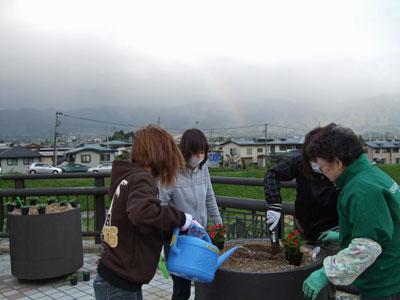 毎年恒例の中央地区女性の会の皆さんによる長井橋の花壇への花植えが