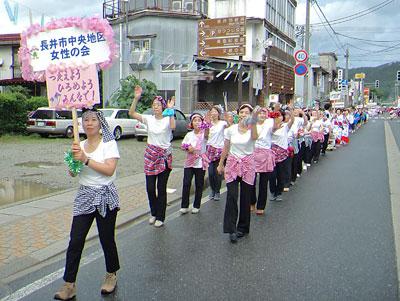 目抜き通りで強行開催!長井市中央地区女性の会も24名の方に参加してい