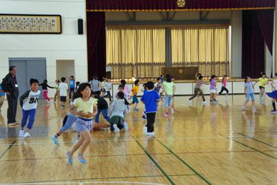 長井小学校の体育館で、1年生から6年生までの50名以上のみなさんが
