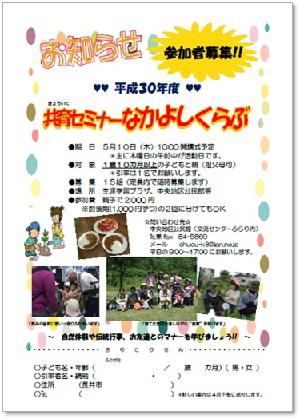 共育セミナーなかよしくらぶでは、平成30年度の参加者を募集します。