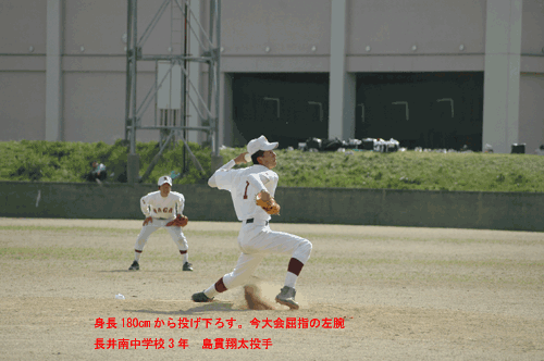 写真は、大会屈指の左腕 長井南中エース 島貫君。 本日、準決勝組み合わせ |