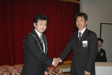 08年理事長佐藤正幸君から09年理事長井上雅晴君へプレジデントリーフの伝達が行われました。