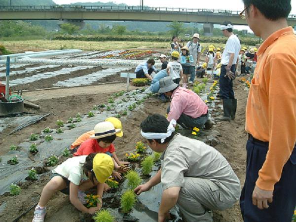6月4、5、6日に長井市河川敷緑化公園にてフラワーボランティア事業が実施されました。例年通り、今年も長井市各地の幼稚園、保育園、児童センターから多くの園児達に参加してもらい、公園内に敷設された各園の花壇にたくさんの花の苗を植えてもらいました。晴天の下、慣れないながらもJCメンバーに手伝ってもらい花の苗を植える子供達を見て和やかになれた事業でした。