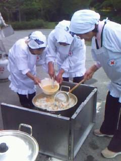赤十字のボランティアスタッフが美味しいそうな炊きだしを作ってくれています。