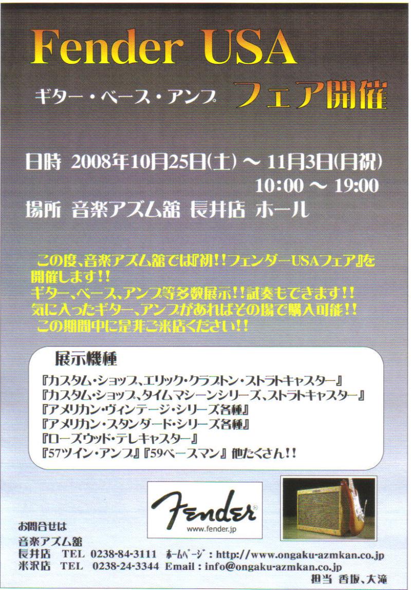 音楽アズム舘では、10月25日〜11月3日までフェンダーUSAフェアを開催いたします。