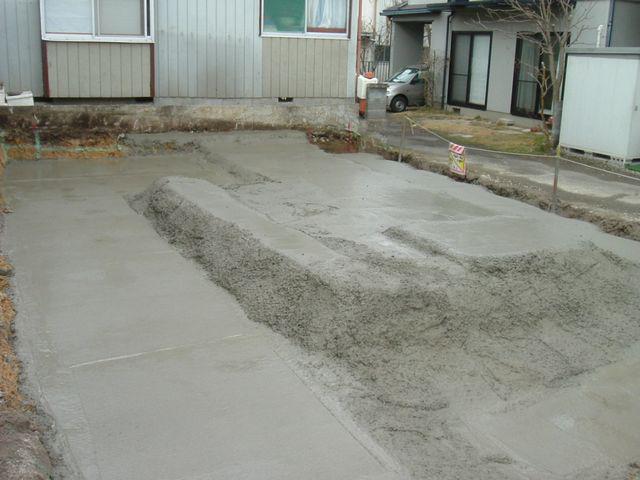 鉄筋を組む前のコンクリートの打設です。