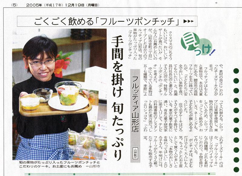 2005年12月19日(月曜日)山形新聞/夕刊でフルッティア山形店を紹介していただきました。