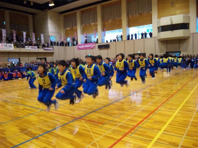 市内各小学校からたくさんの参加者がプラザ体育館に集合しました。