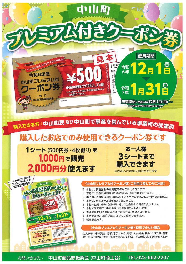 ▼「中山町プレミアム付きクーポン券」のお知らせ