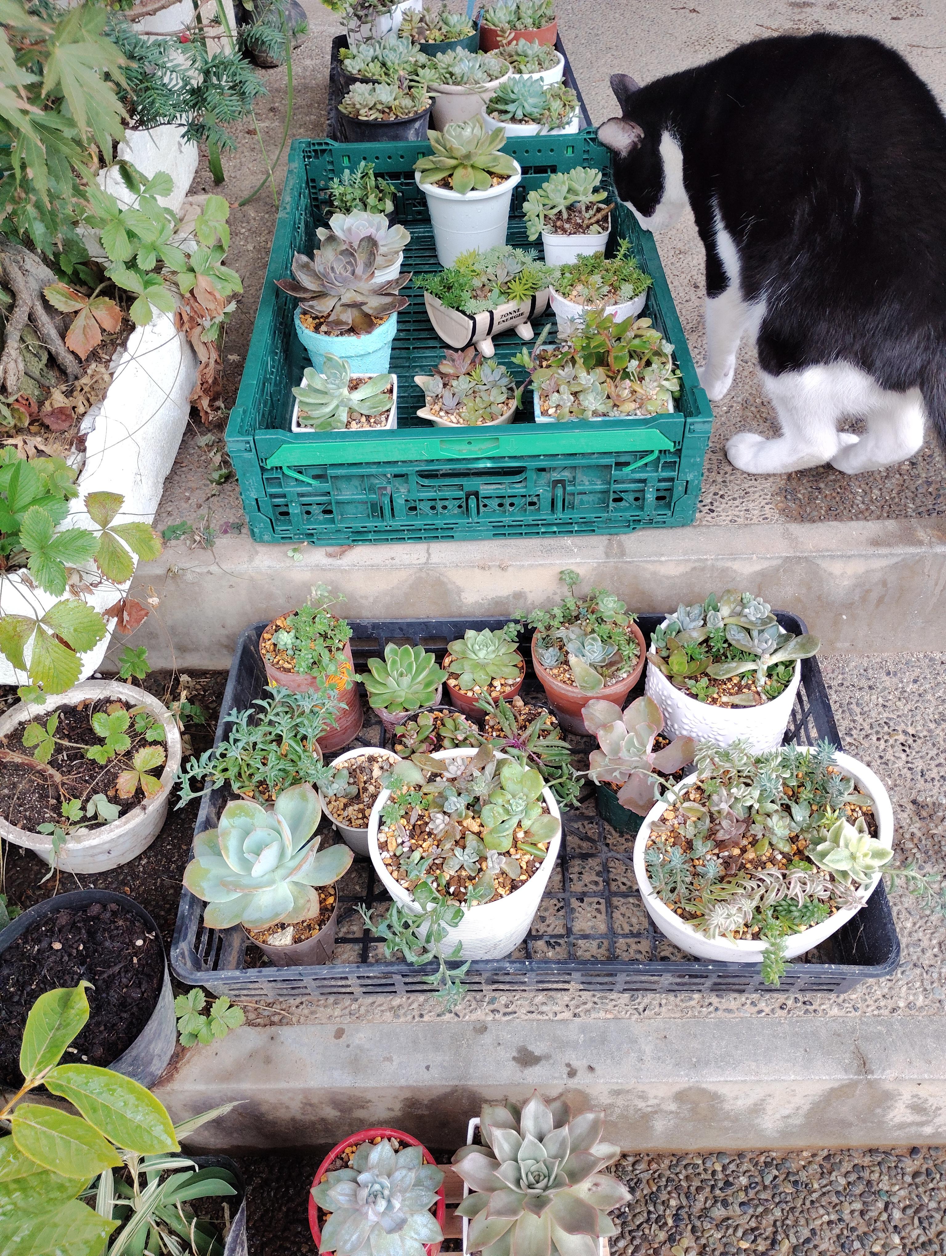 生長期なので、放って置いても元気に育っていますが、伸びたところを切って、他の鉢に寄せ足したり、土を被せたり、枯葉をとったり…あっという間に終わる作業ばかりなのですが、あまりに可愛すぎて、終わるのが名残惜しく、一人話しかけながら結局2時間も経っていました……(^-^;コワイ