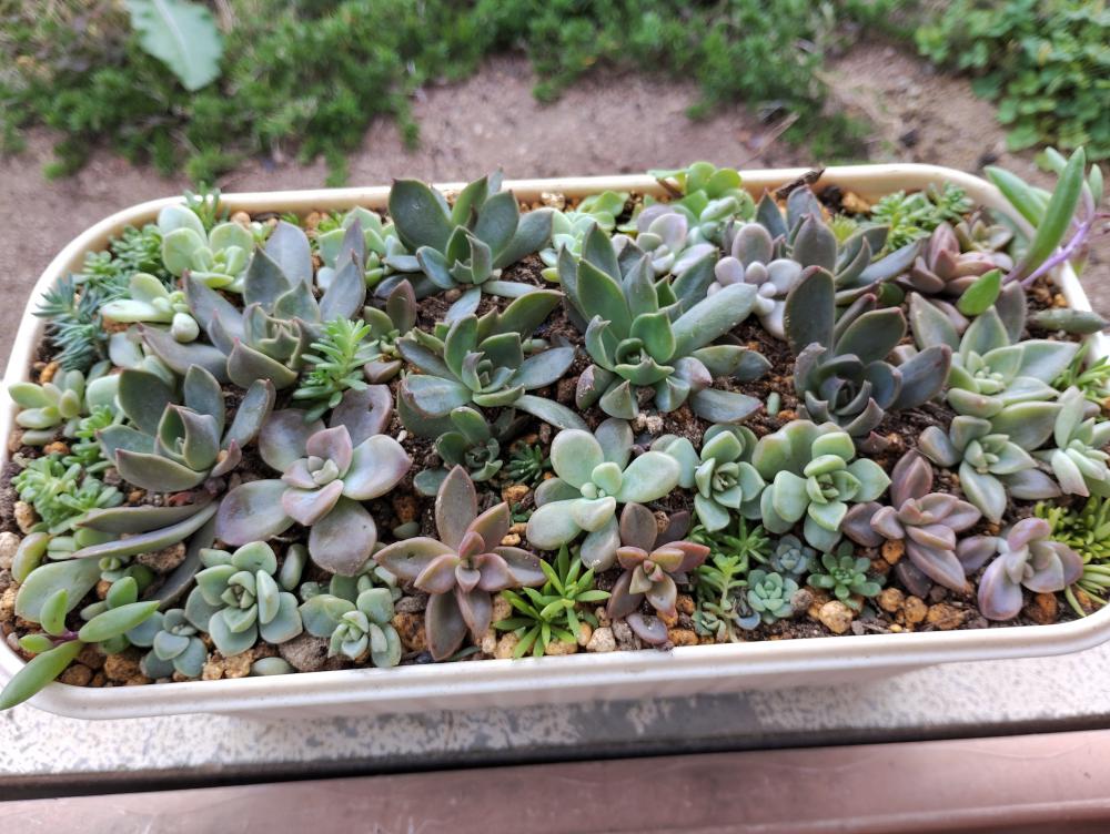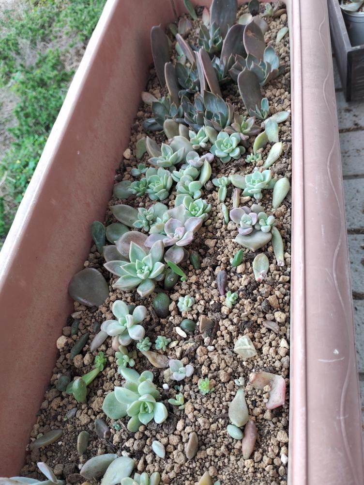 プランターですくすく育った葉挿しの多肉ちゃん達で寄せ植えが完成しました(〃'▽'〃)