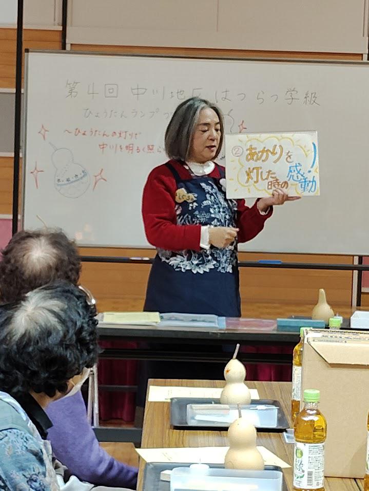 今回は、「ひょうたんランプづくり~ひょうたんの灯りで中川を明るく照らそう」と題しまして、