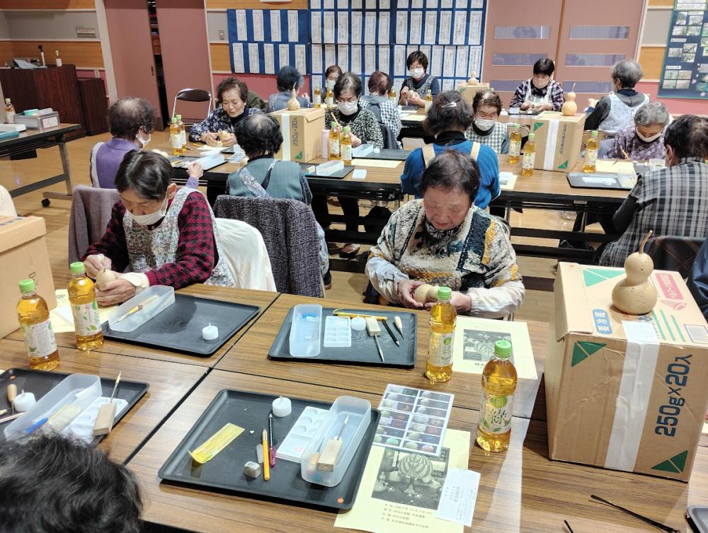 米沢ひょうたん愛好会副会長の石黒百合子さまを講師にお迎えし、ひょうたんランプを作りました。
