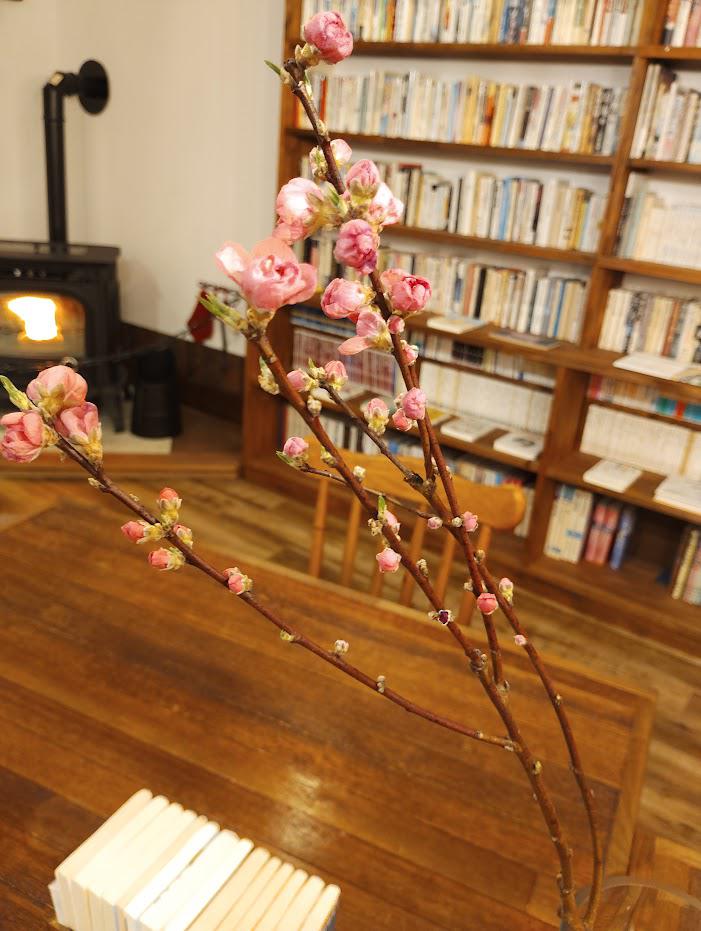 桃の花の濃いピンクが店内に映えて、よりあたたかな雰囲気に(*^^*)