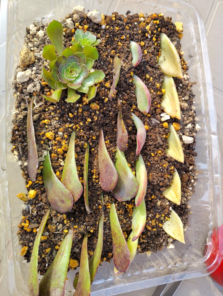 5月の開店に向けて、弱った根をとり、悪くなった茎を切り、発根を促進し、ロゼットを整え…と、多肉植物たちのメンテナンス