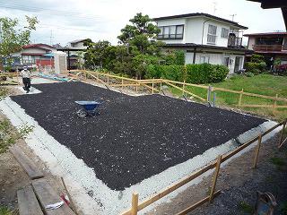 今日は、基礎の部分に、炭を敷きました。