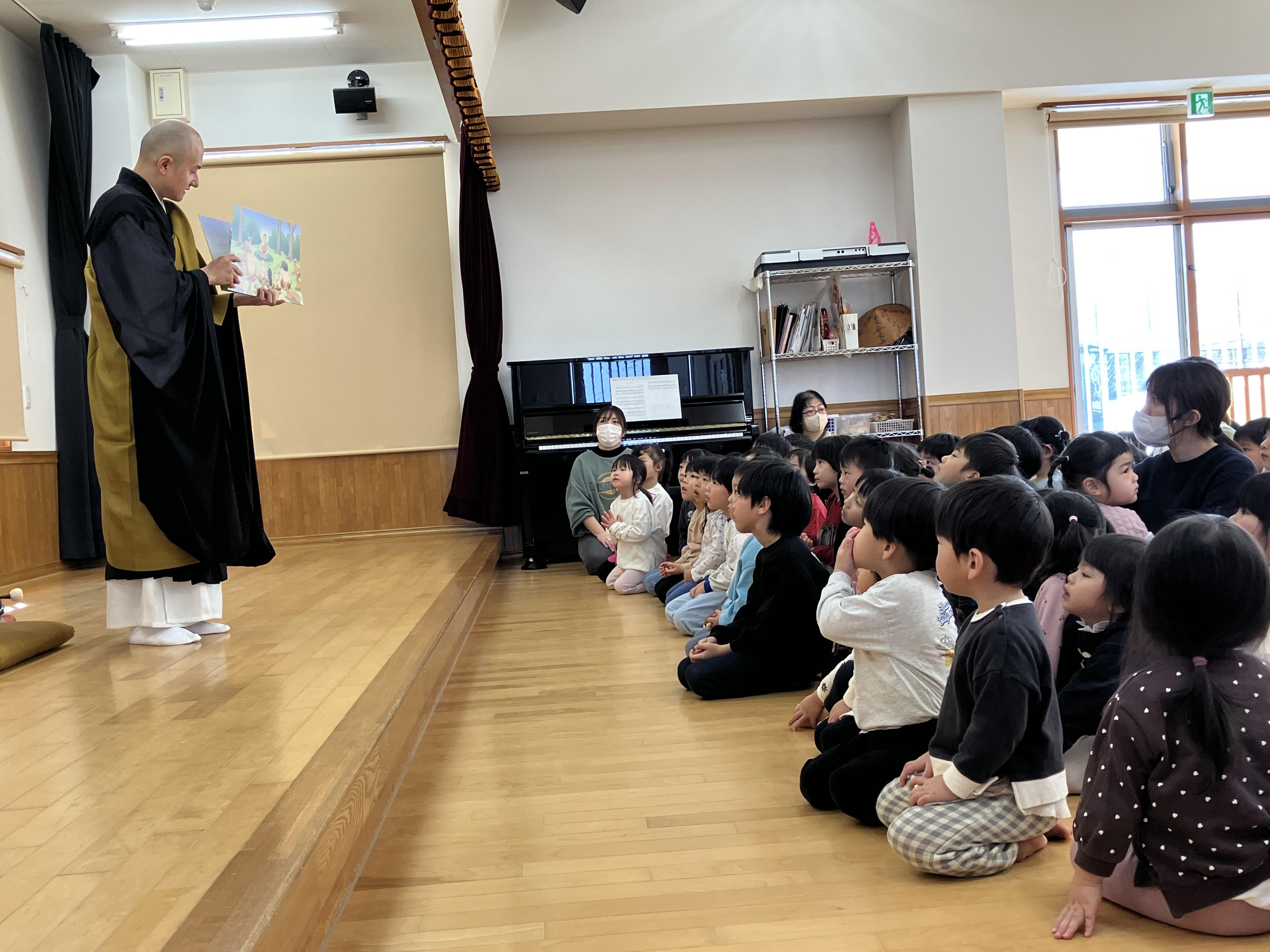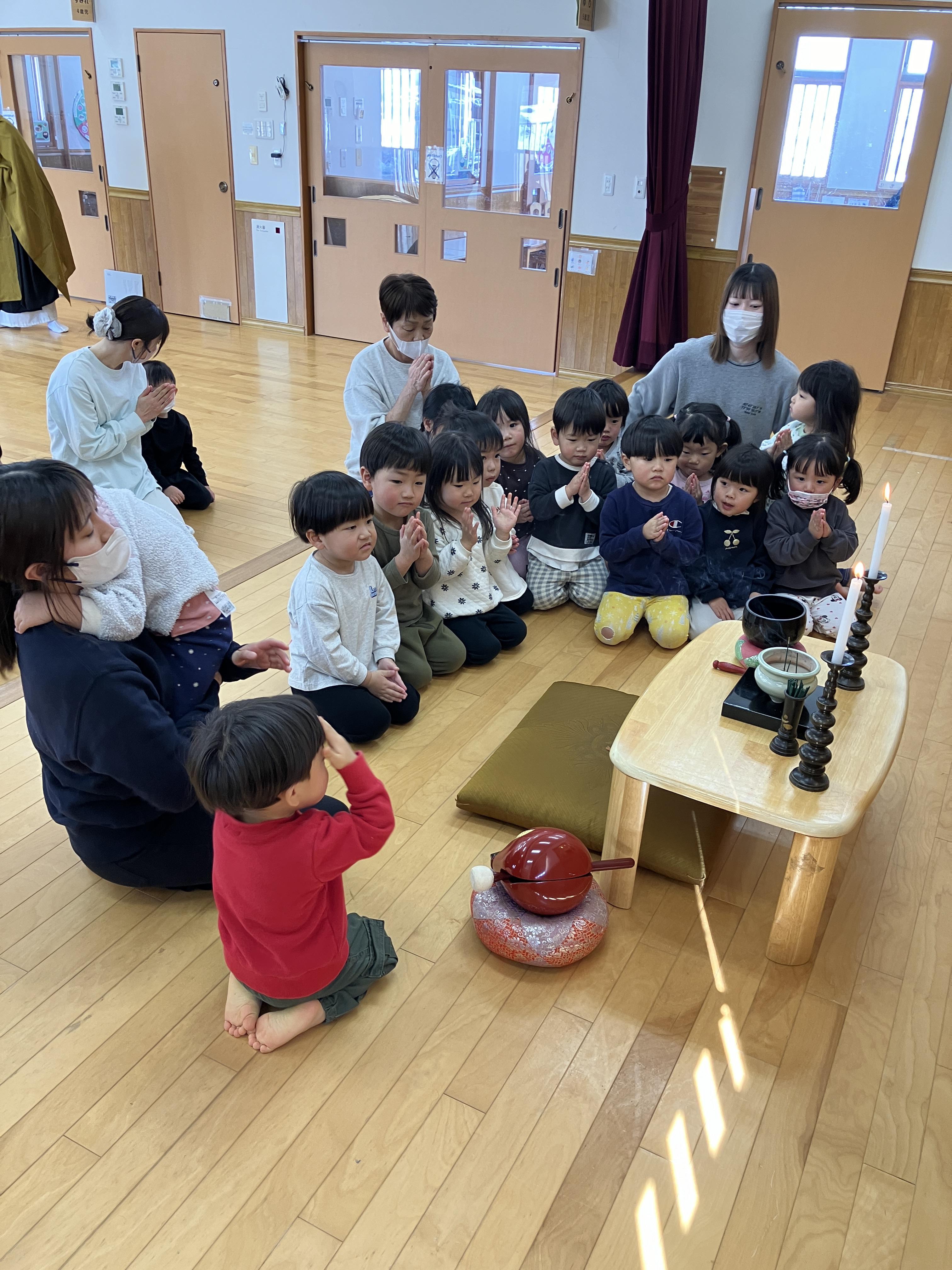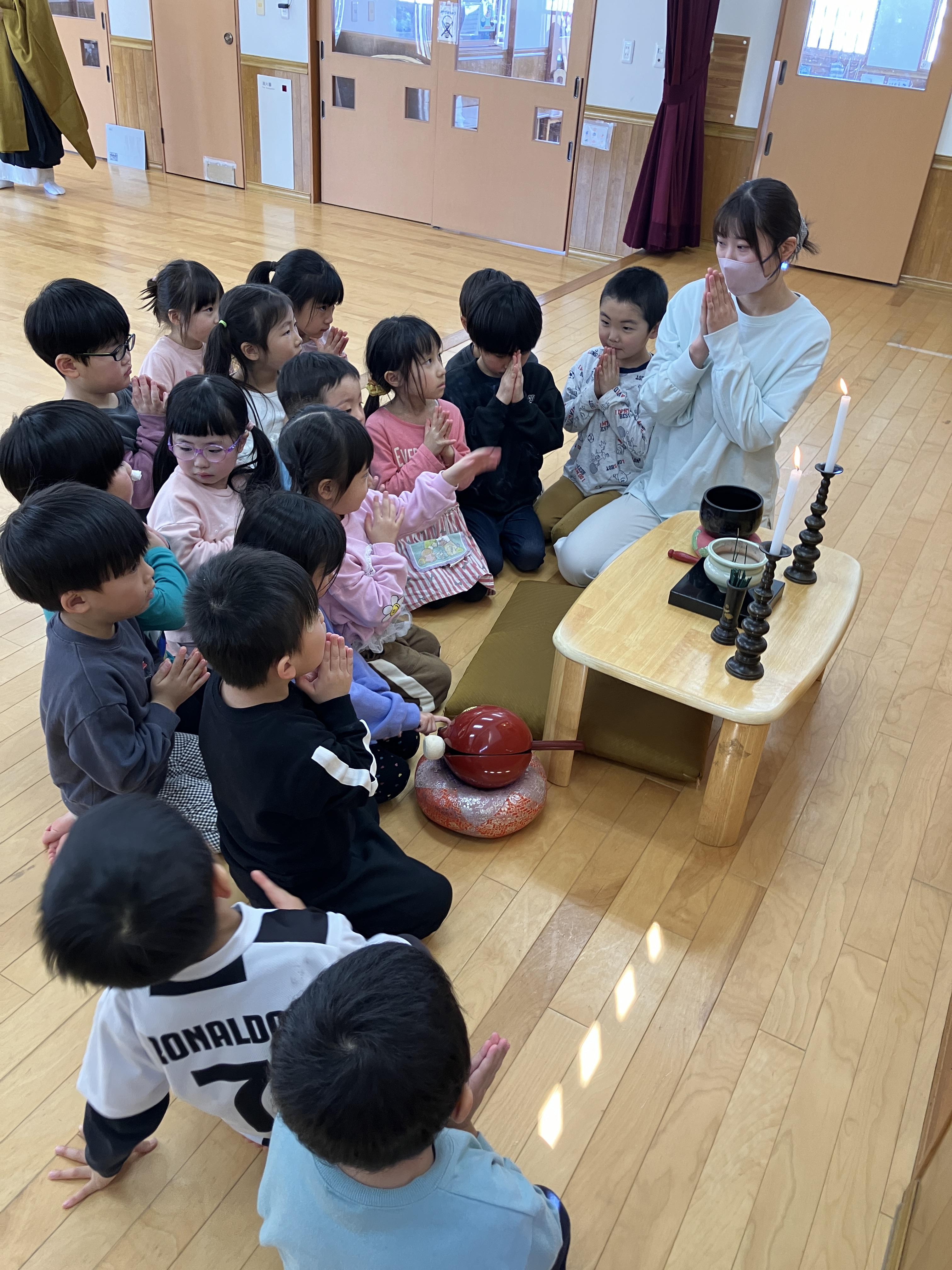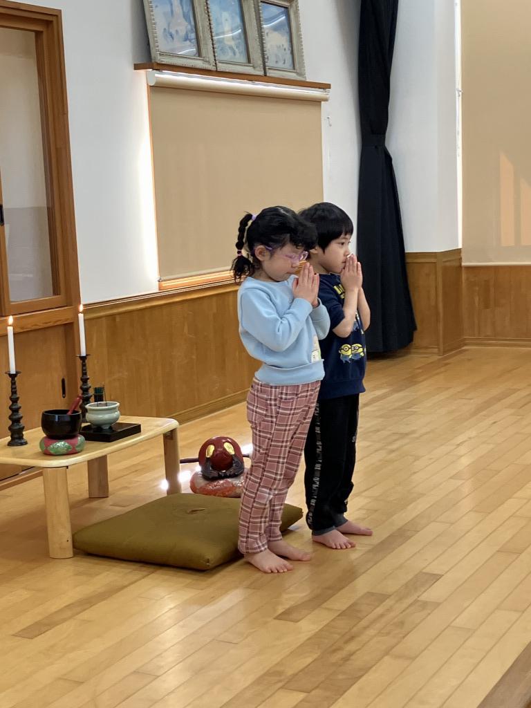 2月13日(金)に涅槃会が行われました。お釈迦様が亡くなられた日であることを知り、ちょきグループでお釈迦様にお供えする団子作りをしました。昌伝庵の今成副住職より読経とお話をお聞きして、お釈迦様の教えと感謝の気持ちをもち、お釈迦様に手を合わせました。