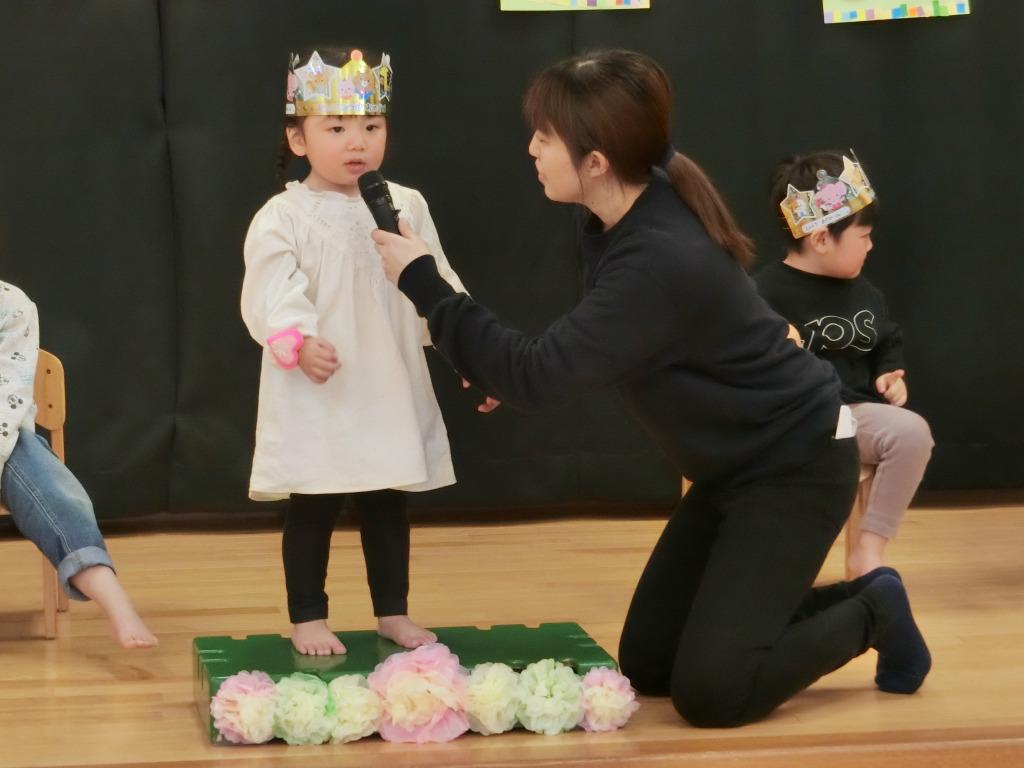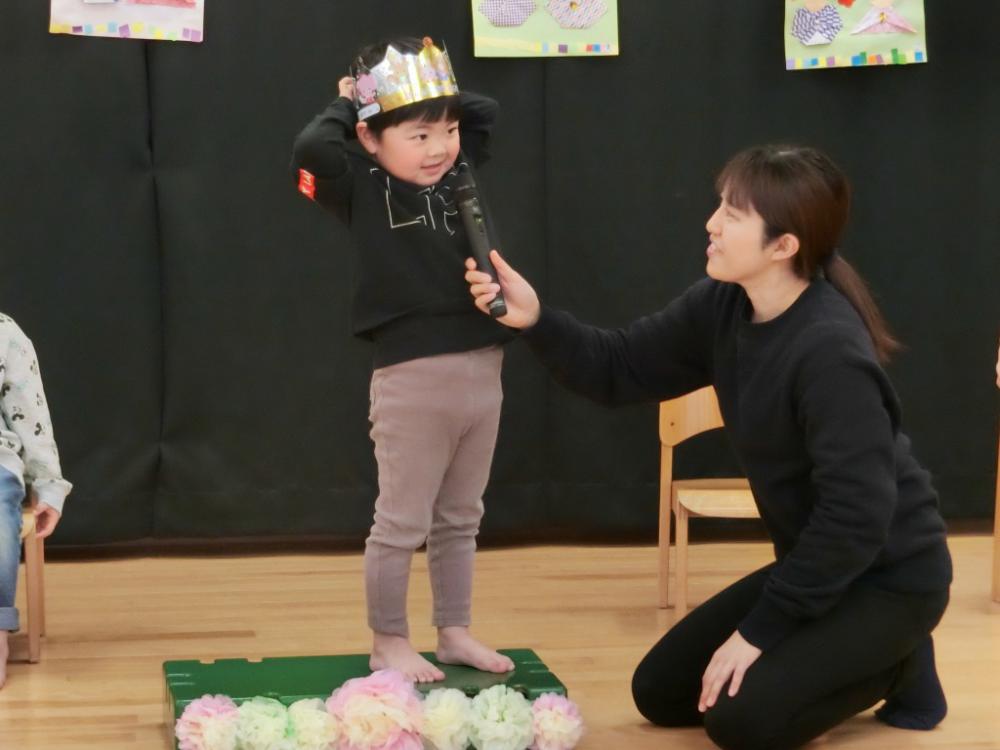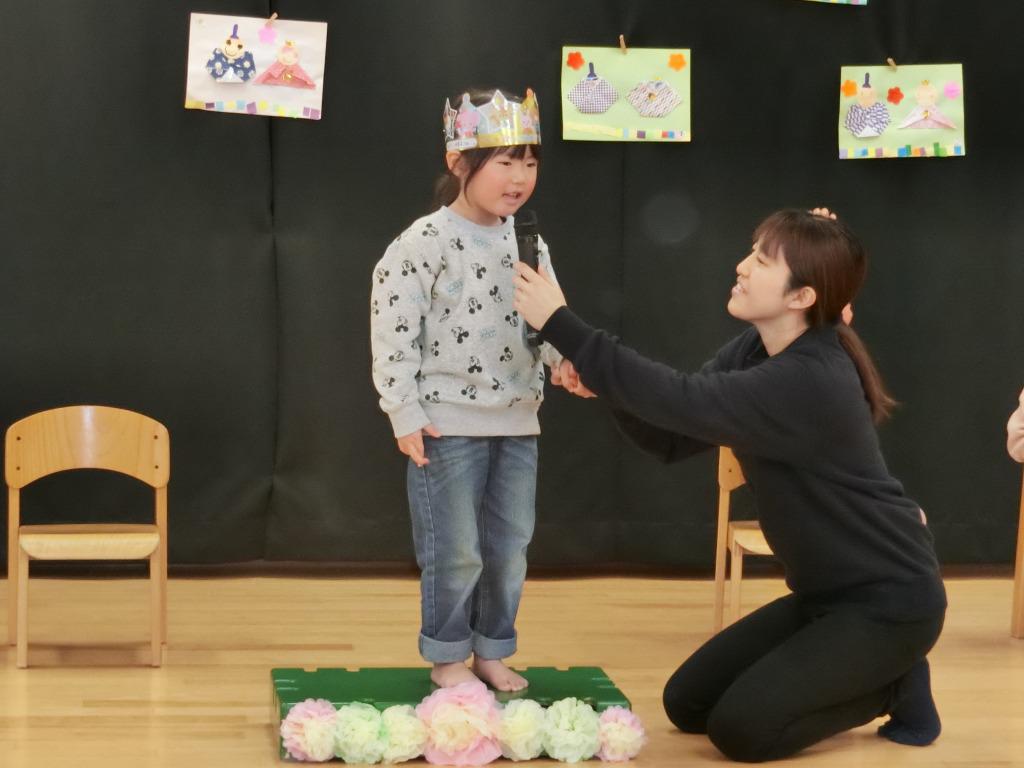 3月3日(火)ひなまつり誕生会が行われました。誕生児のお友達は恥ずかしそうにしながらも、インタビューに応えたり得意なことを披露してくれました。沢山の拍手をもらい、にっこりです。職員の出し物は「おひなさまのはなし」の劇を見て楽しみました。南部保育園のみんなが、すくすく大きくなりますように!お誕生日おめでとうございます。