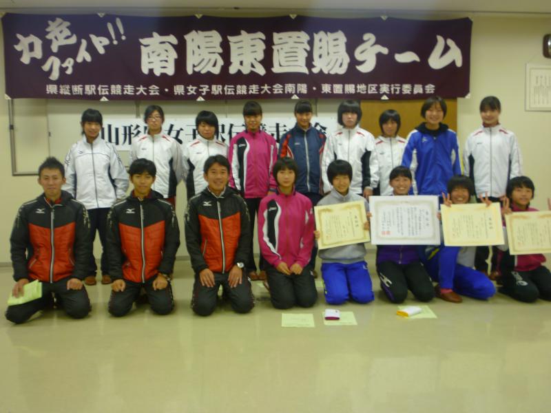 11月23日(日)上山市本庄地区公民館から山形メディアタワーを結ぶ5区間20.5kmのコースを県内11チームの女子ランナーが競いました。南陽東置賜チームは、1時間11分02秒、総合4位という素晴らしい結果を出しました。これまでの御支援、御声援本当にありがとうございます。チーム一同、次年度に向けてさらに精進して参ります。