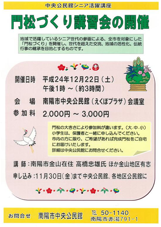 【中央公民館シニア活躍講座】12/22(土) 門松づくり講習会が開催されます。
