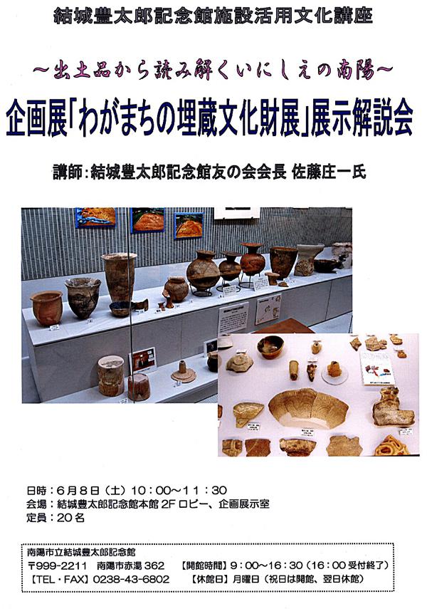 結城豊太郎記念館の企画展として「わがまちの埋蔵文化財展」を開催しています。