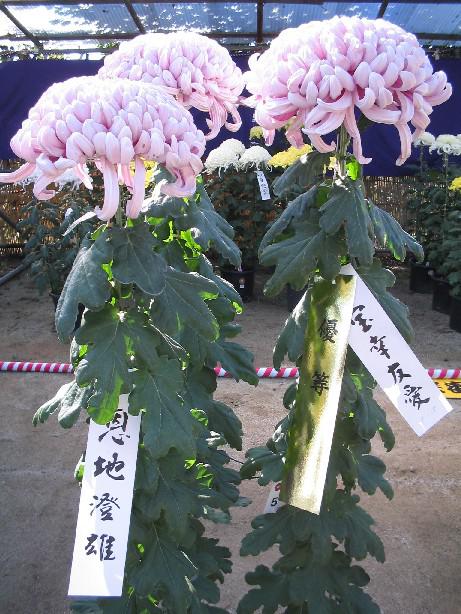 南陽菊花会宮内支部の恩地さんの菊が今回の「早咲審査」の優等に選ばれました。