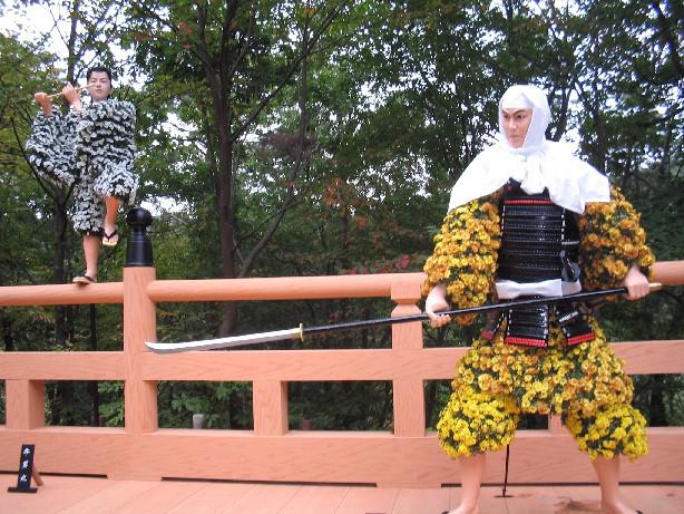 今年の菊まつりの場面はNHK大河ドラマ『義経』8場面、『忍たま乱太郎』1場面、『白雪姫』1場面の計10場面です。