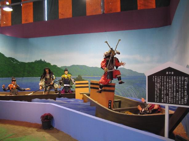 昨日に引き続き菊まつりの場面を大公開!公開第2回目は『第10景 壇ノ浦の戦い義経八艘飛び』です。