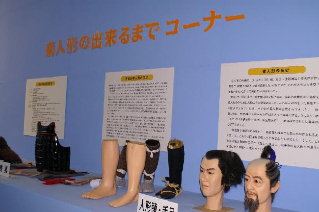 菊まつり会場内には、菊人形の場面や菊花展の他に『菊人形の出来るまでコーナー』があり、実際に菊人形が出来るまでを人形を部分的に見ながら解説付きで分かりやすく知ることが出来ます。また、その近くにはビデオコーナーもあり、映像を通して、より具体的に知ることが出来ます。