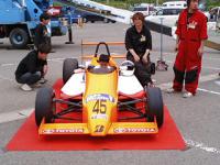 のりもの展示コーナーには、F1600レーシングカー、パトカー、白バイ、消防自動車、ダンプカー、除雪車、高所作業車、ゴミ収集車、ユニック自動車、落書き自動車などが展示され、子どもたちは興味津々でした。