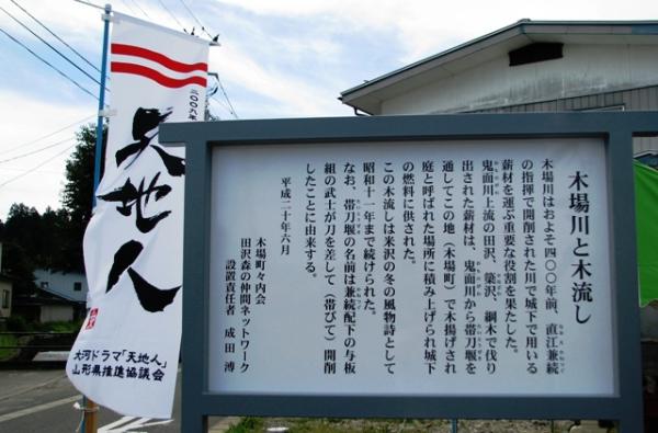 ▼川から薪木を陸揚げした「木場町」に建つ案内板