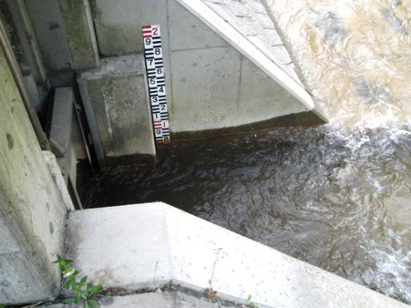 ▼堀立川の取水口「猿尾堰」