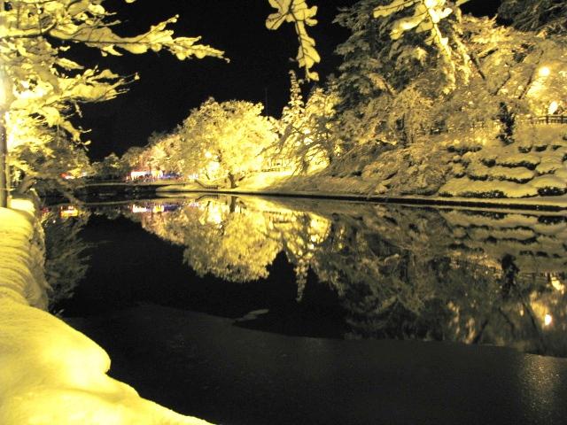 ▼ライトアップされた雪景色