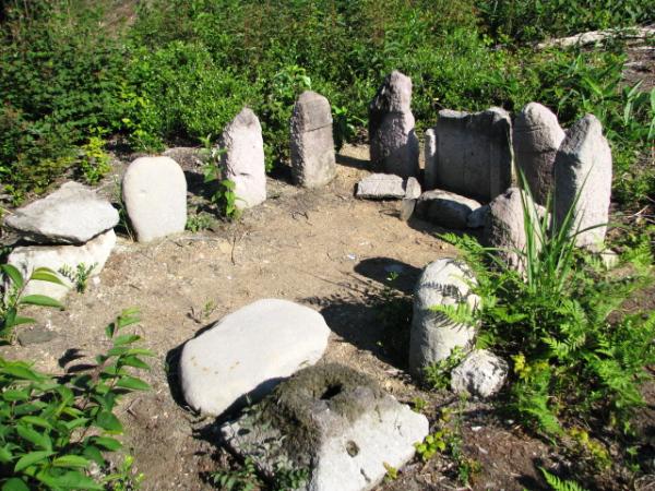▼尾根の先端にある板碑群