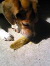 いちごとマンゴーです。 某ファミレスのデザートである「季節のフルーツのガレット」(今の季節だと、温かいクレープの上にマンゴーとアイスクリームがのっている)は、ミーナにとって、夢の饗宴にちがいありません。 自宅では、マンゴーはミーナと分けて食べていて、私は実、ミーナは種です。写真のように見事に種のまわりを食べつくします。 アジアのマンゴーは種が薄いので、ミーナにはラッキーです。(ブラジルのマンゴーは種が大きい…。包丁をいれた瞬間、騙された気分になるのは私だけでしょうか?) 昨晩は、食べきれなかったお寿司を私はネタ、ミーナはシャリで分けました。 何て不公平なんだろう…と思ってるかなぁ…と思いつつ、今日もマンゴーの実を頂くのでした。 |