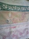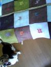 まずはお洗濯をして、落とせるしみや汚れを落とします。 洗濯が終わり、洗濯機のフタを開けてびっくり。 あまりにもアンティーク過ぎて、溶けてなくなりかけている布がありました。ショック…。 だいたいこういう布は、値札のついていないおまけ布です。 値札のついた物はやはりしっかりしていました。 アンティーク布とボロ布は紙一重だという事を学習しました。 友人にこの話をすると、「洗濯するのが、縫った後じゃなくてよかったね。」と言ってくれました。 確かに。縫った後に溶けてなくなったら、ショックは大きかったでしょう。 パッチワークをしてカーテンを作成中。やはり風合いが素敵です。 |