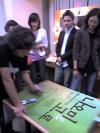 ライブの前に、タローくんの子供服を買いに行き、FACE SHOP(安くていいパックがたくさんある。友達にあげるのに安くてよいです)でお土産を買いました。ゴローさんは楽器屋さんに楽器を買いに行きましたが、葉子さんに止められてそのまま戻ってきました。 ゴローさん一家が楽器屋さんに行っている間、スタッフと韓国茶カフェでまどろみました。ここは韓国の衣装を来て写真を撮る事ができます。コスプレにはまったのでした。 さて、収録とインタビューを無事終えて、放送局のロビーにあるボードにサインをして、だんだん寂しくなってきました。韓国のみんなとお別れの時間がこくこくと近づいてきた事が、本能的に分かったのです。ずっと三日間一緒だったからでしょう。 ああ、すごく寂しいな…。 明日の朝の便で羽田に戻ります。韓国のスタッフの皆様、ファンの皆様、ありがとうございました。またお会いしましょうね。 |