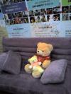 自分用には緑茶パックとヨーグルトパックを買いました。なかなかいい感じです。でも一番気に入ったのは、ヨーグルトパック!プチダノンのような容器に入っていて、食べたくなるようなヨーグルトのいい匂いがします。でもぐっとこらえて、顔につけて10分。洗い流すと肌がふかふかになるので、とっても気に入っています。 またパックを買いに行きたいです。 写真は、ナオゴロのステージセットだったソファとくまさん二匹。私達のイメージってクマさんらしい。 |