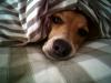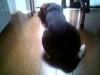 今朝は宅急便の配達員の方のノックの音で目が覚めました。厳密に言うと、隣で寝ていたミーナが、玄関に飛び出して行く際に、おもいっきり私のお腹を踏んで行ったのです。私が起き上がると、バツ悪そーうな顏をしてこちらを見ていました。 大きな封筒を受取り、お礼を言ってドアを閉め振り返ると、ミーナは部屋の隅に行き、首をうなだれて落ち込んでいました。