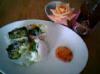 今日はゴイクン(生春巻き)です。レシピは必要ないくらい適当なのですが、一応記載します。 ライスペーパー、ボイルエビ(縦に二つにしておく)、鶏むね肉(細長く切ってボイルしておく)、春雨(ボイルしてザルにあげて水にさらしておく)、お好きな生野菜(この日は…みつ葉、キュウリ、人参、パプリカ、レタス、大葉、パセリ)です。 では、作り方です。 まな板の上にライスペーパーが隠れるくらいサランラップを敷きます。大きなお鍋などに水をはり、ライスペーパーを水にひたします。それをラップの上にのせ、ライスペーパーの手前の方にお好きな具をのせて、ライスペーパーの左右を折り込みながらくるくる巻きます。そして、ラップをキャンディーの包み紙のようにしてゴイクンを包みます(左右をねじるか折り込む)。冷蔵庫で少しおいて、巻き寿司のように切ってソースを添えていただきます。 この日のソースはスイートチリソースでした。バルサミコやドレッシング、韓国味噌のようなものでもおいしいです! 熱帯雨林メニューは梅雨にぴったりですよね。ビール片手にお試しください(^○^)/ |