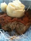 真っ白い大きなマジパンのバラがついたガトーショコラです。