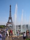 夏のエッフェル塔は、噴水の周りで人々が水遊びをしていました。