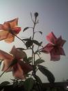 近所の園芸所で売れ残った名札がなくなってしまったばらの苗木を、とてもかわいそうに思い、買ってきて育てているのです。薄い緑色のバラが咲き、花びらはすべて開ききらずに咲き終えるという不思議なバラは、我が家のベランダで健康にすくすく成長しています。 ベランダにはティーテーブルセットがあり、お花の中でお茶をしながらバラ図鑑を広げ、次はどんなバラを買おうか悩むのが最近の私のティータイムです。 ロザリアンな私は最近、アプリコット系やオレンジ系の色のバラを集めていて、名札のないバラの隣で、毎日バラ図鑑でアプリコットオレンジ系のバラをチェックしていました。 ある朝、いつものようにバラに水をあげつつ、ジーコ監督に習い植物に話し掛けていると、一つだけつぼみがオレンジ色になっている事に気付きました。バラは突然変異が多い植物なので、特には気にしていませんでした。しかし、それ以降にできたつぼみはすべてオレンジになってしまい、株丸ごとの突然変異で、花の色がオレンジ色に変わってしまいました。花の形も変わり、満開に咲き乱れるようになりました。 勝手な解釈かもしれませんが、名札のないバラは私がオレンジが好きだという事に気付いて、自らオレンジ色に染まったのかもしれないと思いました。花には心があるのだと本当に実感したのです。 名札のないバラに、申し訳ないと思う気持ちと、けなげさに愛おしい気持ちで一杯になりました。 花の心って美しいですね。 ...もっと詳しく  |