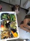 今日は何をつくろうか…と考えつつ、食卓の上にキャベツを置いてスーパーに買い物へ行きました。 桜のつぼみもはちきれそうだし、春の甘い風にわくわくしてしまいます。結局、この日はアサリとプチトマトとキャベツを炒めて、白ワインと胡椒で仕上げる事にしました。アサリを買って帰宅すると、食卓に置いたはずのキャベツがありません。あんなに大きいキャベツが突然姿を消したのです。お留守をしていたミーナのみぞ知るキャベツの行方。お散歩にでも行ってしまったでしょうか?ミーナがセロさんばりのマジックで消してしまったのでしょうか? ふと気付くと、キャベツのしんが床に転がっていました。一瞬何が起きたのか考えましたが、ミーナが姿煮ならぬ、キャベツの姿食いしてしまったようです。もちろんミーナのお腹はパンパン!即お説教されたのは言うまでもありません。 私のヨガマットの上に寝転び、カイロ入りぬいぐるみ枕にあごをのせて反省している模様です。こにくたらしいですが、自分のしつけの甘さに反省しつつ、夏までに「伏せ」を教えようと決心をしたのでした。(ミーナは伏せができない) 覚悟!! |