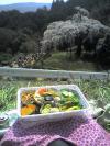 三人分のお弁当を作りました。たまに作るお弁当とは、とっても楽しいものです。たらの芽の天麩羅と、菜の花のお浸しと、筑前煮と…。いつの間にか「フンフンっ」って鼻歌まじり。季節の素材を使ってお料理をする楽しさって、女性に生まれてよかったなぁと思いました。 四季を生活の中にとり入れて楽しむ事は、日本特有の文化だなぁと思います。季節に合わせた器を使ったり、一輪挿しを飾ってみたり。 なのに…気付くと、私は重箱を持っていなかったのです。 せっかくお弁当作ったのにぃ…! 仕方ないのでプラスチックケースにつめてみました。味気ないけど完成! ミーナもうれしそうだけど、お留守番です。 さて、桜を見に行くぞ。 ミーナとお弁当と記念撮影しました。 |